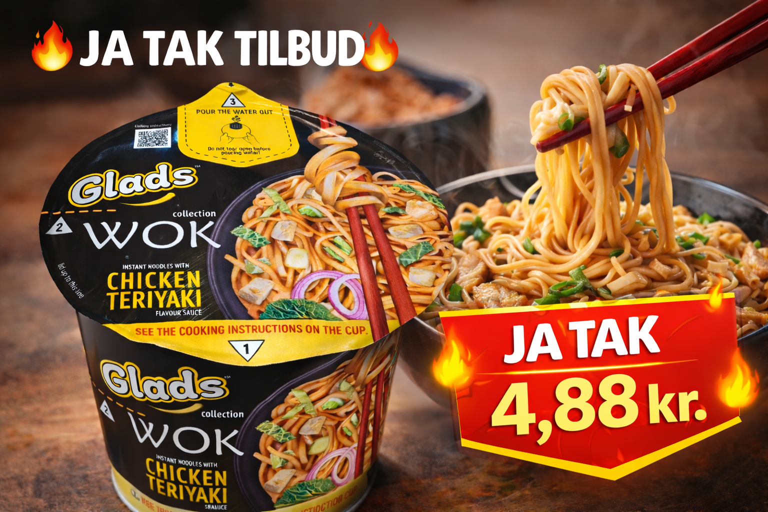 😍😍‼️‼️ JA TAK ‼️‼️😍😍 🍜 Glads WOK – Chicken Teriyaki 🍜 JATAK PRIS 4,88 😱😱 Lækre instant wok nudler med smagfuld chicken teriyaki sauce 😋 Perfekt til en hurtig frokost, aftensmad eller snack – klar på få minutter! ⏱️ Kan hentes nu, senest søndag