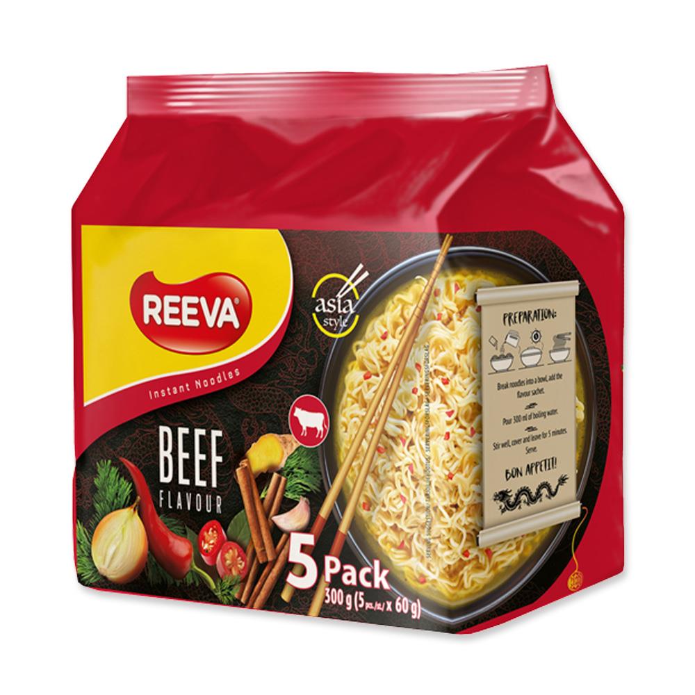 Når tiden er knap, men du stadig ønsker en varm og mættende ret, er vores Reeva pakke med 5 poser nudler med oksekødssmag et godt valg.