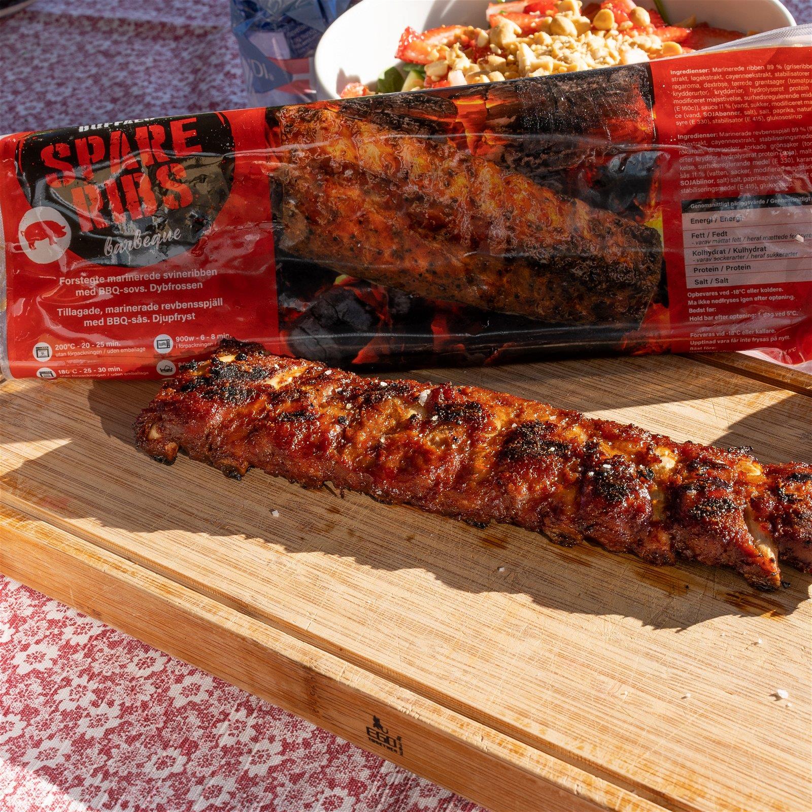 Ingen grill og sommer uden spareribs, og nu får de 425g. lækre barbecue marinade Buffalo spareribs til en vild pris!